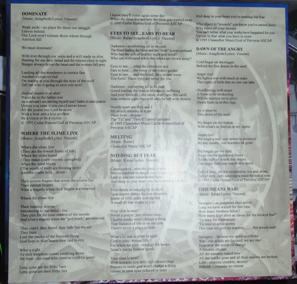 Tracks A1 to A3, A5 to B2, B4, & B5 © 1995 God of Perverse (ASCAP).