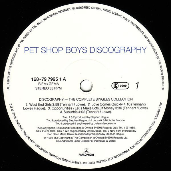 © 1991 Pet Shop Boys Partnership under exclusive license to EMI Records Ltd.