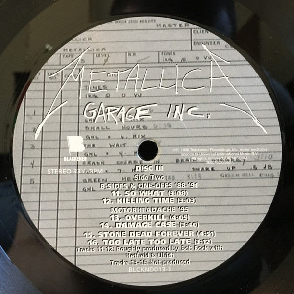 - Producer – Bob Rock (tracks: A1-D5, F1, F2), James Hetfield (tracks: F1, F2), Lars Ulrich (tracks: F1, F2), Mark Whitaker (tracks: E1, E2), Metallica (tracks: A1-E2, E5)