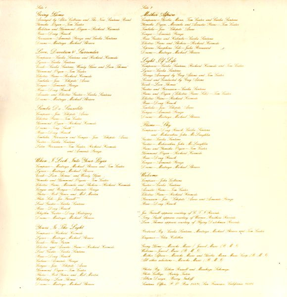 - Producer – Carlos Santana, Maitreya Michael Shrieve*, Tom Coster