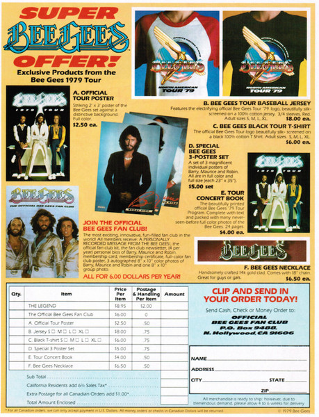 Some copies included insert advertising Bee Gees merchandise and book offer.