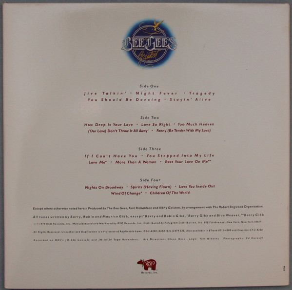 Issued with clear plastic sleeves with the Bee Gees and RSO logos printed in red.