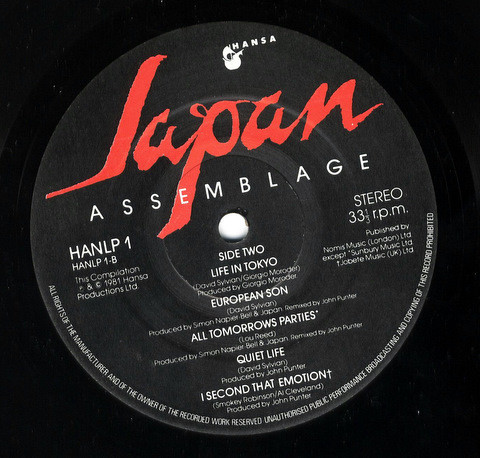 Some initial copies came with a sticker attached, stating: 'The Very Best of Japan: Includes 5 Tracks Never Previously Released On Album'. In early 1982 the sticker was revised to name the three most recent singles on Hansa - 'European Son', 'Quiet Life', and 'Life In Tokyo'.