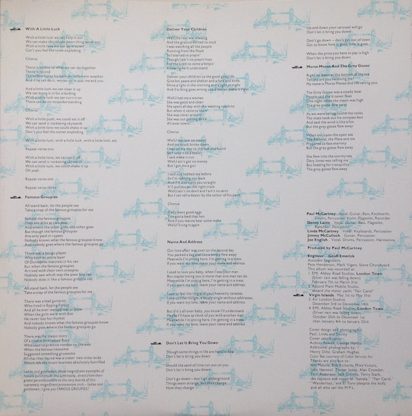 - Written-By – Laine* (tracks: A1, A5, B3, B5, B6), McCartney*