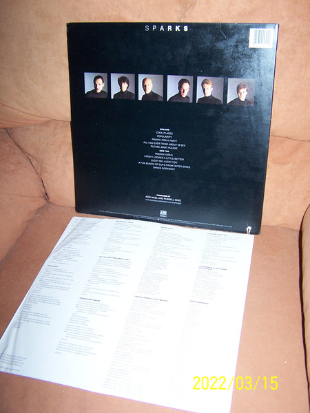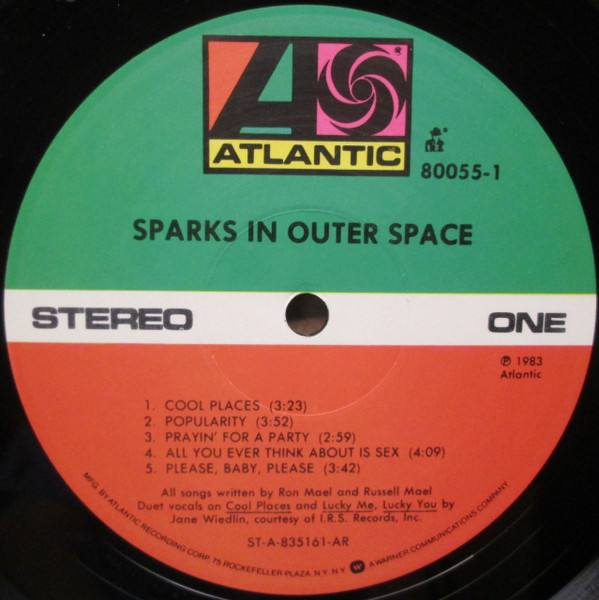 Another Allied pressing of Sparks - In Outer Space exists without the Jane Wiedlin label credit for backing vocals on two tracks.