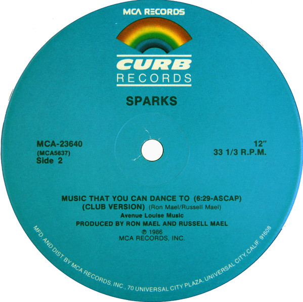 A1: From the "Red" Soundtrack LP, MCA-6166 and the upcoming Sparks LP, MCA-5780 "Music That You Can Dance To"
