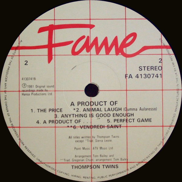 - Written-By – Thompson Twins (tracks: A1 to B1, B3 to B5)