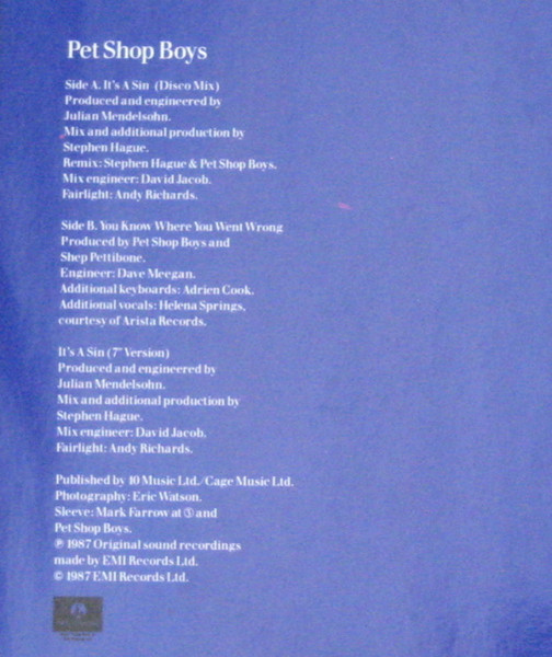 - Sleeve – Mark Farrow, Pet Shop Boys