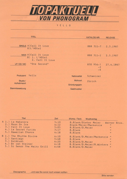 ℗ 1987 Phonogram GmbH, Hamburg.