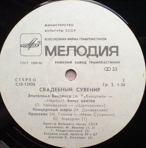 - Orchestra – Оркестр Большого Театра СССР* (tracks: A3, B1, B2, B4), Большой Симфонический Оркестр Центрального Телевидения И Всесоюзного Радио* (tracks: A1, A2, A4, B3)