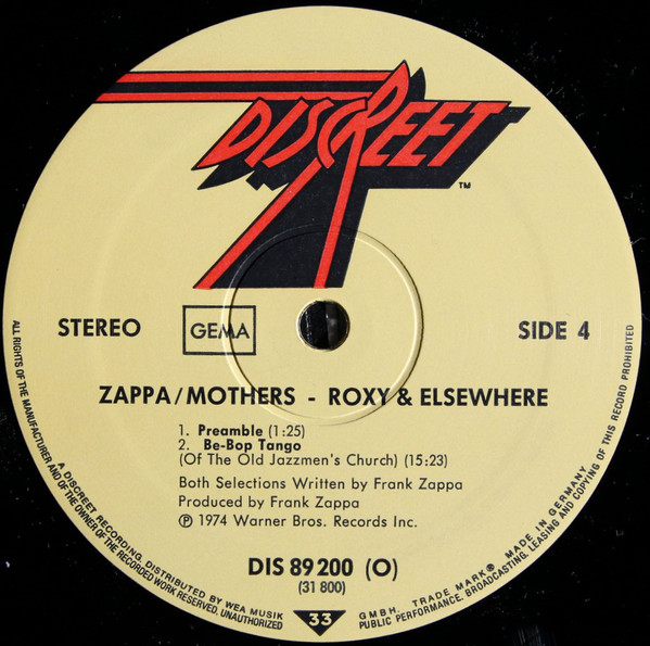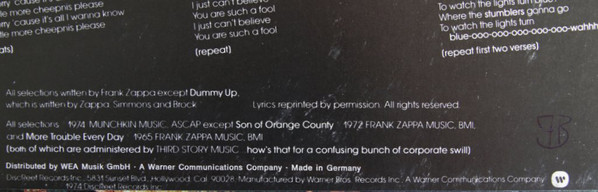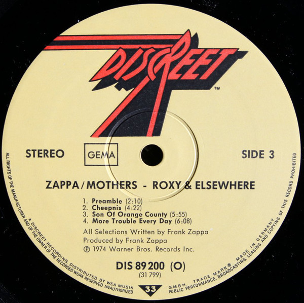 Other portions were extracted from road tapes of show #2 Mothers Day, 1974, at the Auditorium Theater in Chicago and the recent gymnasium extravaganza at Edinboro State College, Edinboro, Pennsylvania, May 8, 1974.