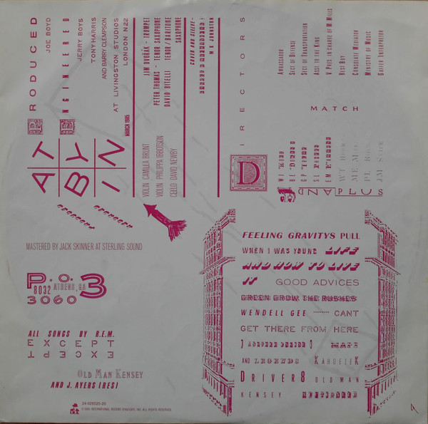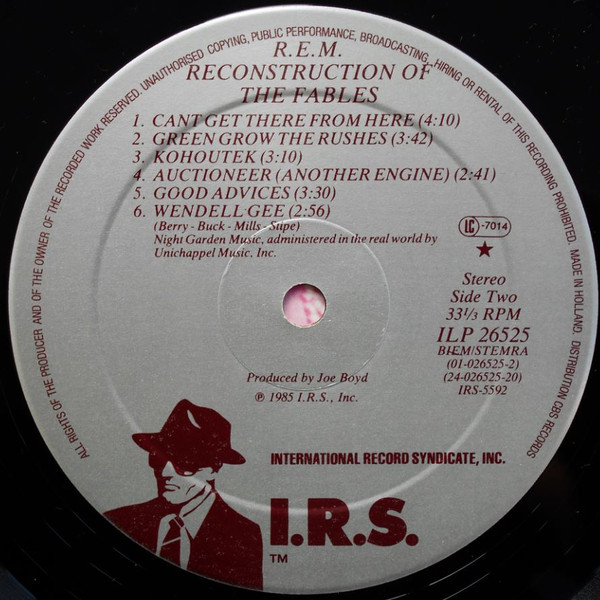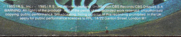 ℗ 1985 I.R.S., Inc. / © 1985 I.R.S., Inc. / Made in Holland Distribution CBS Records / CBS Disques SA