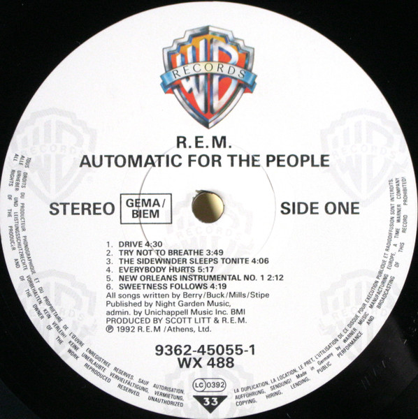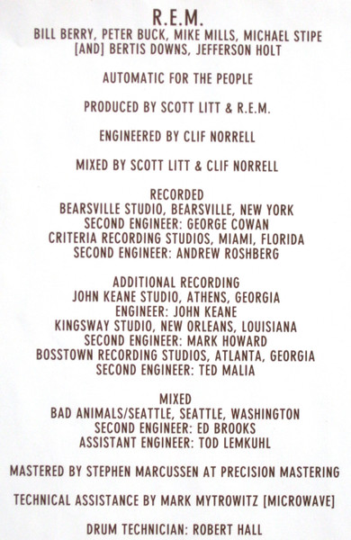 On spine, printed: 9362-45055-1 R.E.M. AUTOMATIC FOR THE PEOPLE