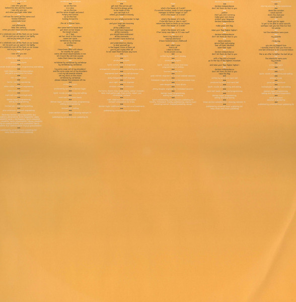 Unlike the original 2007 issue, this edition is packaged in a single glossy outer sleeve with a reproduction of the sticker that sealed the first pressing printed directly onto the cover. The orange and yellow inner sleeves with lyrics are very similar to the originals.