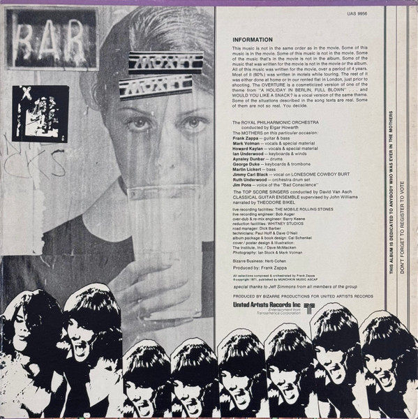 - Composed By, Orchestrated By, Arranged By – Frank Zappa