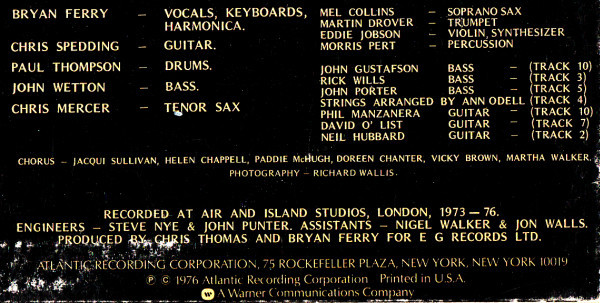 - Producer [Produced By] – Bryan Ferry, Chris Thomas