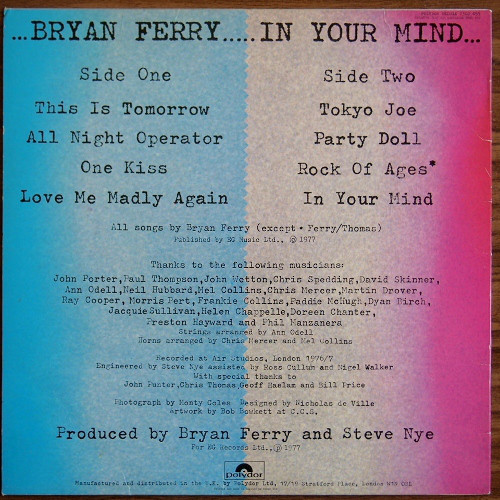 - Written-By – Bryan Ferry, Thomas* (tracks: B3)