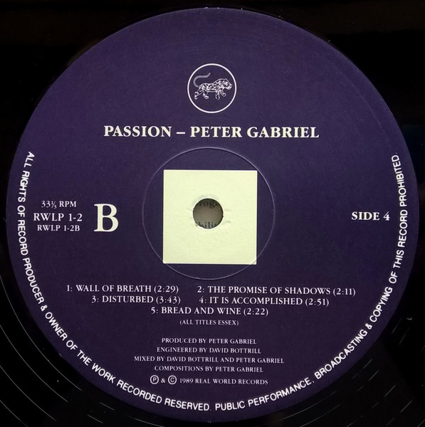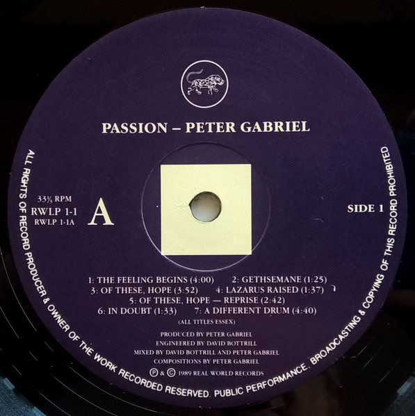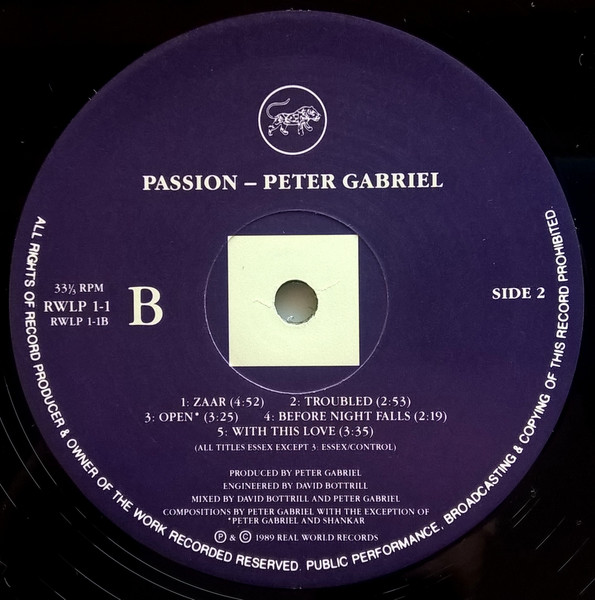 Recorded between February 1988 and March 1989 at Real World Studios, Box, England. Mastered at Town House Cutting Room.