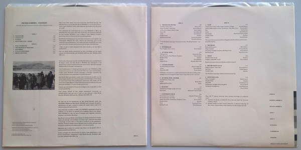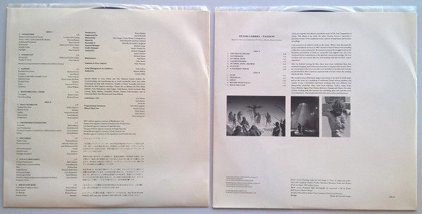 We recorded some of the finest singers and soloists in the field of world music and we set the score on a backdrop of traditional North African rhythms and sounds. It was a wonderful experience working with such different and idiosyncratic musicians. They came from Pakistan, Turkey, India, Ivory Coast, Bahrain, Egypt, New Guinea, Morocco, Senegal and Ghana. For many of them working with this material was something quite new and they were very enthusiastic. The soundtrack is full of the spirit of their performances." Peter Gabriel