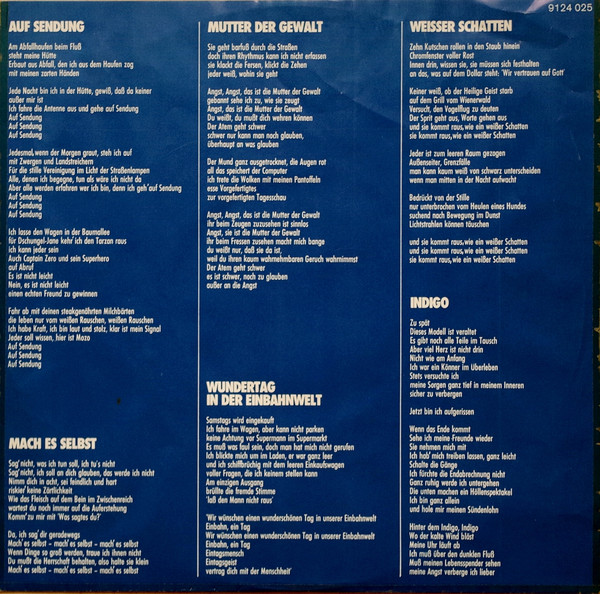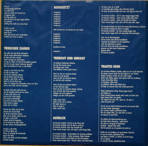 Printed inner sleeve includes lyrics translated to German.