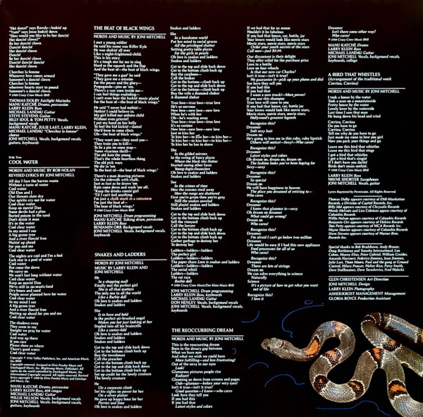 - Music By – Bob Nolan (tracks: B1), Joni Mitchell (tracks: A, B2 to B5), Larry Klein (tracks: A3, A4, B3)