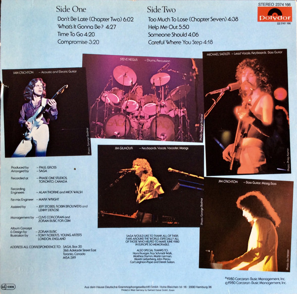 - Lead Vocals, Keyboards, Bass Guitar – Michael Sadler