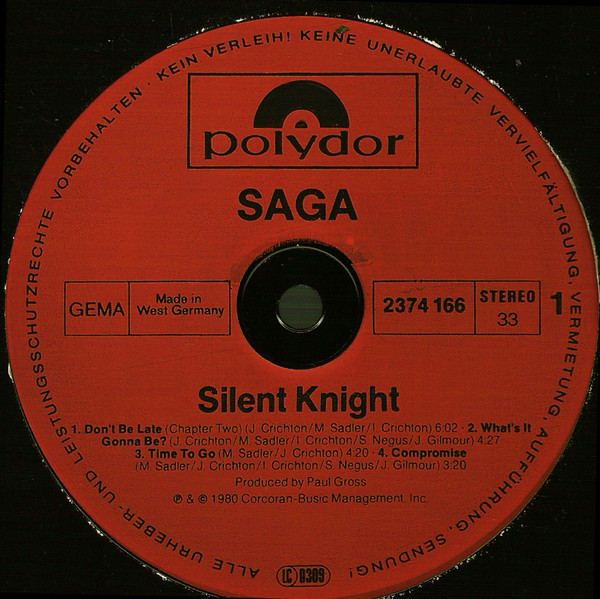 Silent Knight: Red/black Polydor center labels with red inner ring.