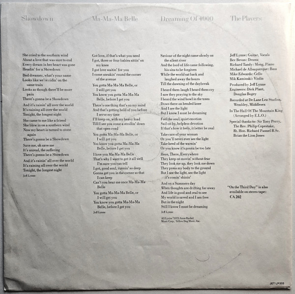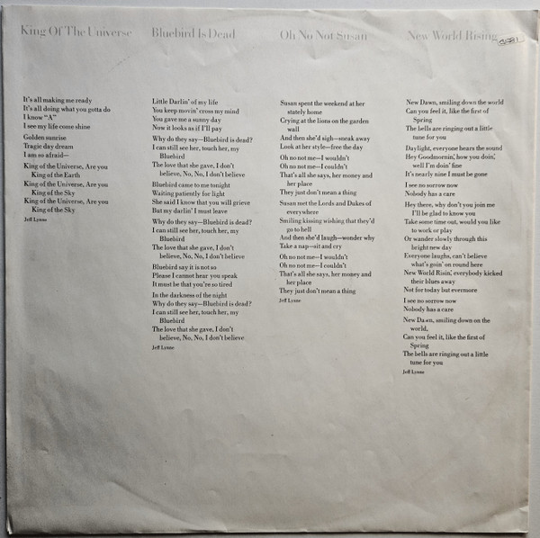 Jeff Lynne is mentioned by full name as songwriter on inner sleeve