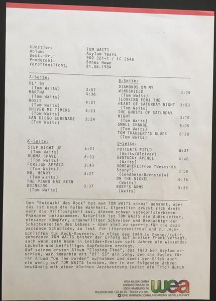 PR-Copy Sticker plus one promotion info sheet by WEA.