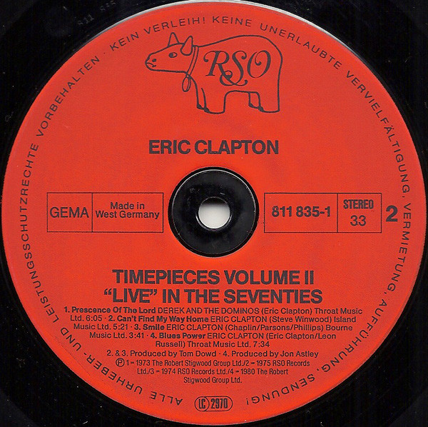 printed onto inlay: (P) 1974 RSO Records Ltd.