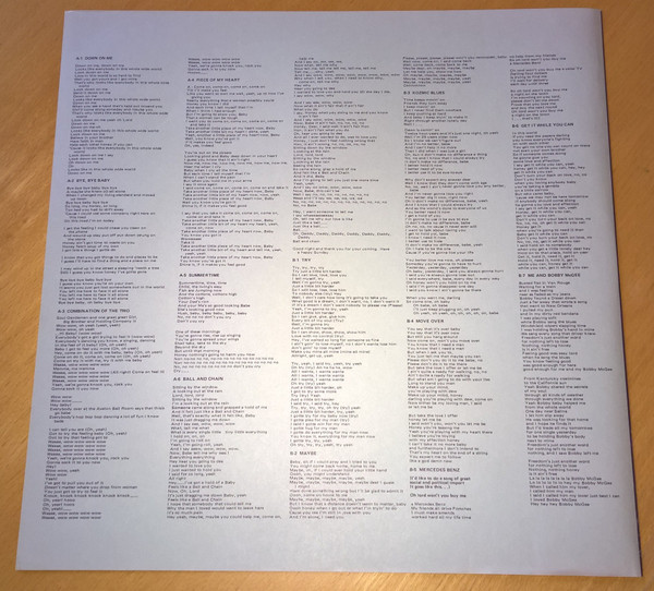 All tracks are previously released under Janis Joplin name and with Big Brother and The Holding Company and Kozmic Blues Band. Includes insert with lyrics in Japanese and English printed on blue hue paper.