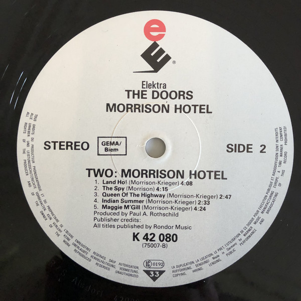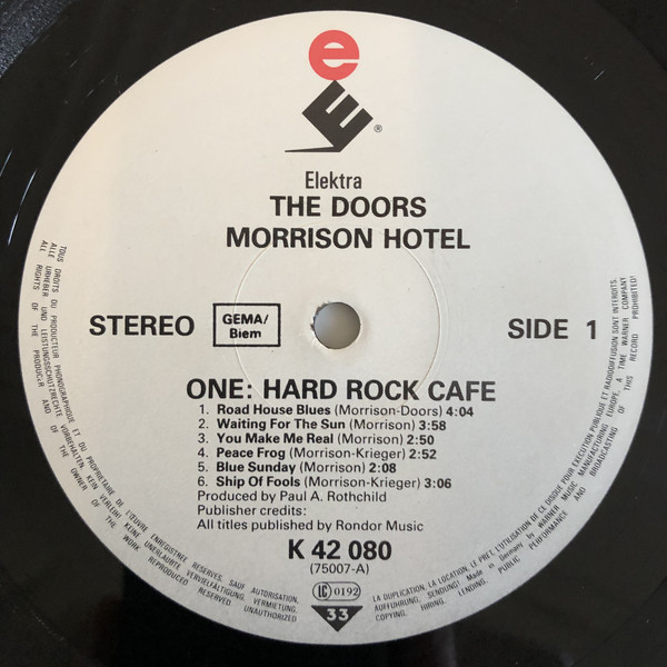 - For an earlier version with "WEA MUSIK GMBH" on labels and without ® after ELEKTRA logo, see Morrison Hotel.