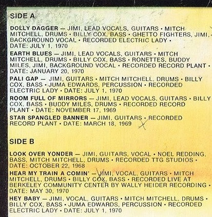- Bass – Billy Cox (tracks: A1 to A4, B2, B3)