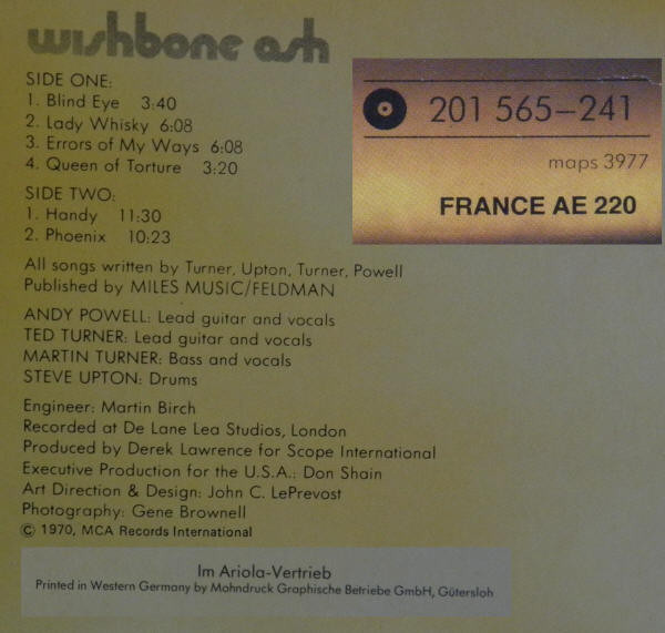 German release that shared the laminated none gatefold sleeve with the French edition Wishbone Ash.
