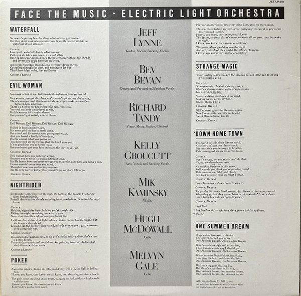 - Guitar, Vocals, Backing Vocals – Jeff Lynne