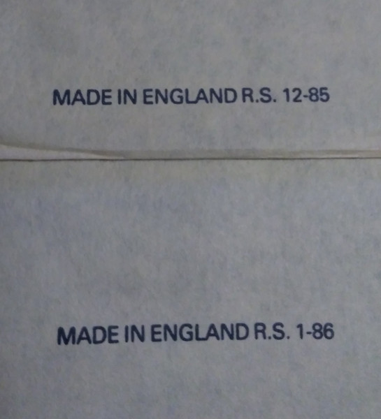 DIsc 2 white inner sleeve has printed MADE IN ENGLAND R.S.1/86