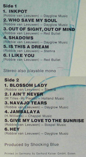 - Written-By – H. Williams* (tracks: B4), M. Tilles* (tracks: B2), Robbie van Leeuwen (tracks: A1 to B1, B3, B5, B6), W. Pierce* (tracks: B2)