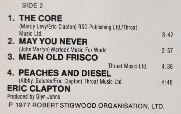 Track B3 has no author credit on back cover, wheras on label of side B Eric Claption is mentioned ("written-by"). In reality this is an old blues standard performed by Arthur Crudup since the 1940s. It was recorded by Crudup for Bluebird Records in 1942 and published 1943 Arthur "Big Boy" Crudup - Gonna Follow My Baby / Mean Old 'Frisco Blues. The label printed cleary indicates Arthur Crudup as the author of the song.