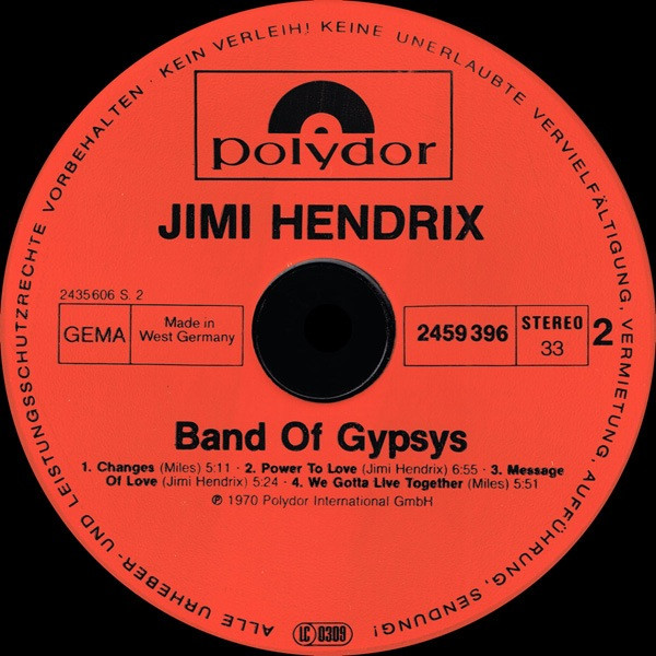 Band Of Gypsys with NO black inner ring in the middle of the label.
