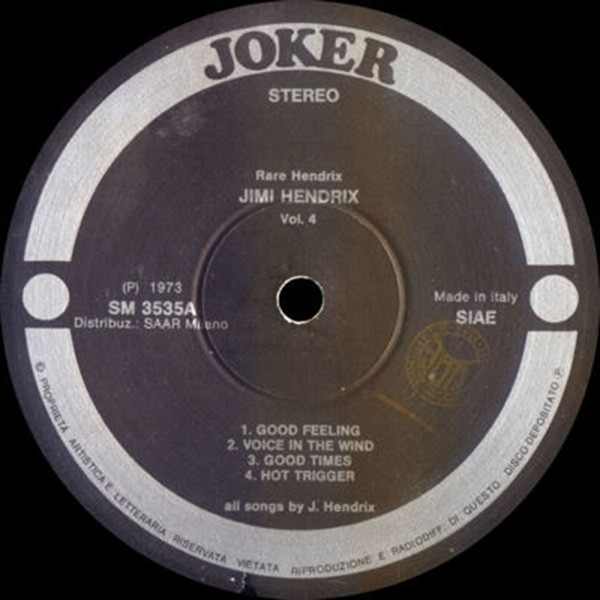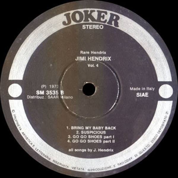Note: A1 to B4 subtitled "Rare Hendrix Vol. 4" on label
