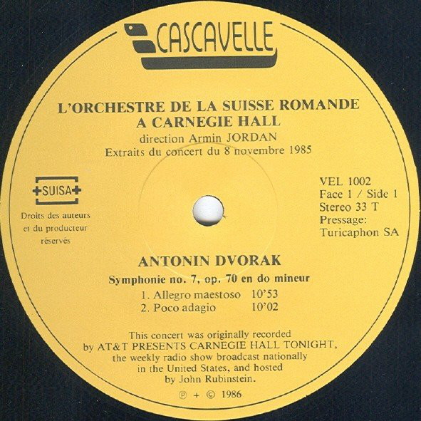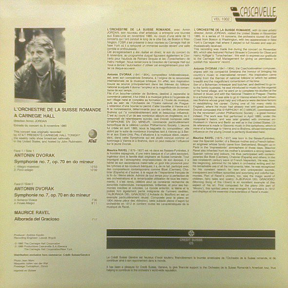 DvorakRavelL'Orchestre De La Suisse RomandeArmin Jordan - A Carnegie Hall (Document) Symphonie No. 7 / Alborada Del Gracioso