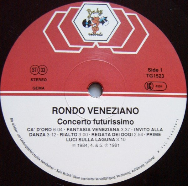 DMM (Direct metal mastering) pressing. Artist appears as "Rondo Veneziano" on center labels.