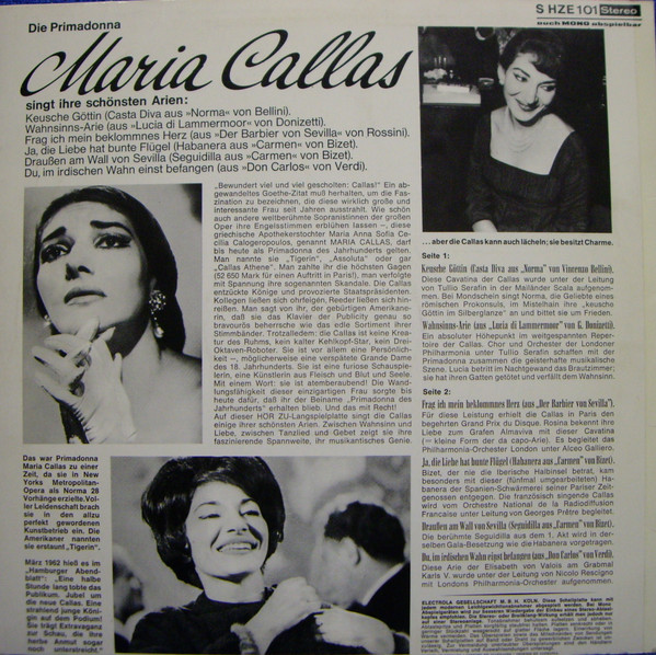 Die Primadonna Maria Callas Singt Die Schönsten Arien This version does have "HÖR ZU langspielplatte" on front and label