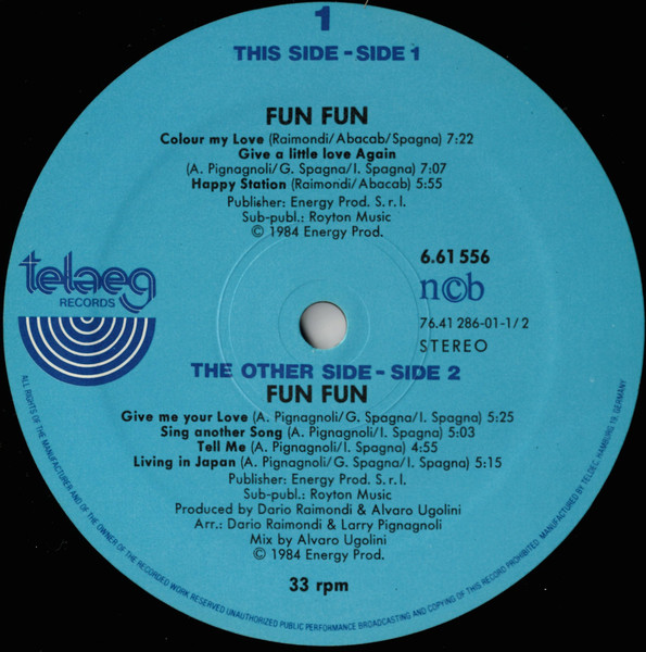 Back sleeve reads: (C) (P) 1984 Energy Production SRL