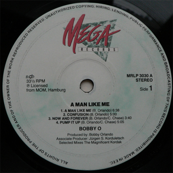 This edition uses the same front cover as other territories, with artist / title listed as Bobby "O" & His Banana Republic, but both spine of sleeve and labels bill it as Bobby O - A Man Like Me.