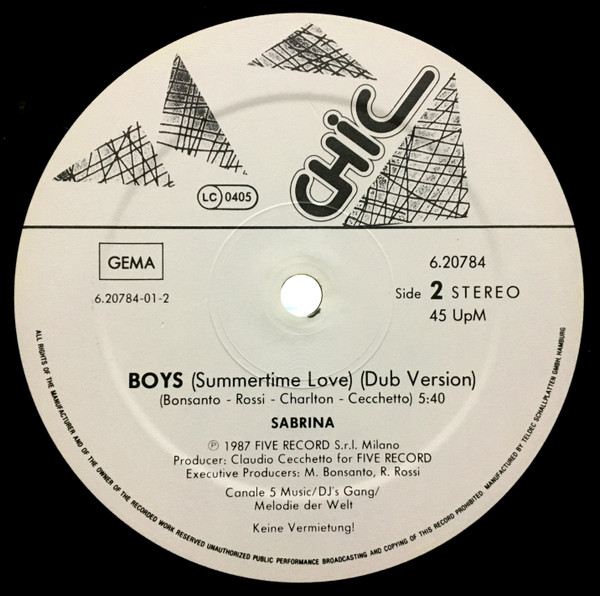 | B | Boys (Summertime Love) (Dub Version) | 5:40 |