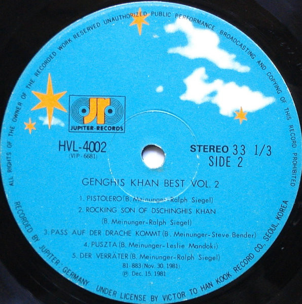 Under license by Victor to Han Kook Record Co., Seoul, Korea.