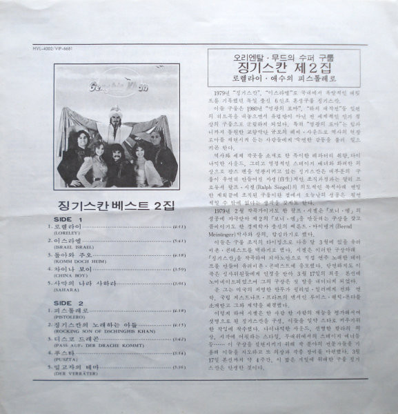 Included are infosheets with songs lyrics on German and Korean. "Loreley" and "Pistolero" on English.