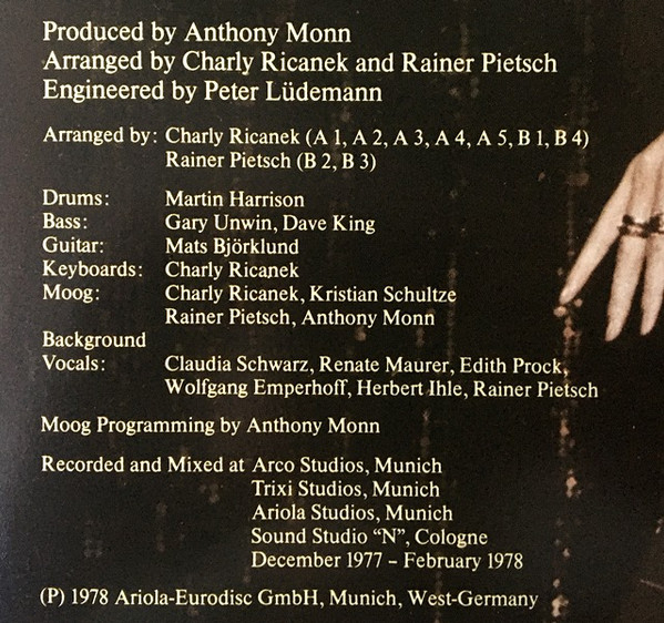 Recorded and mixed at Arco Studios, Munich, Trixi Studios, Munich, Ariola Studios, Munich, Sound Studio "N", Cologne, December 1977 - February 1978