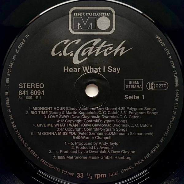 (P) 1989 Metronome Music GmbH, Hamburg